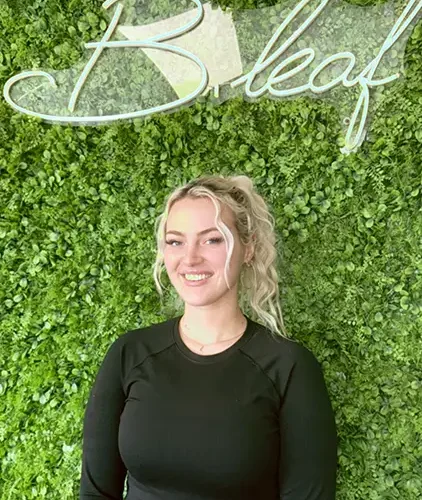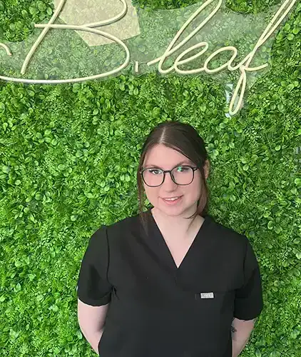 Beyond the clinic, Tiffany is an avid traveler who draws inspiration and perspective from exploring new places. She’s deeply committed to personal and professional growth, always seeking new ways to enhance the B.leaf experience for every guest. Whether she’s coordinating appointments or offering guidance on next steps, Tiffany is your go-to for support, scheduling, and a welcoming smile at every visit.